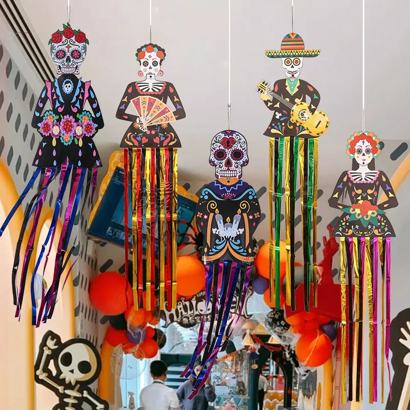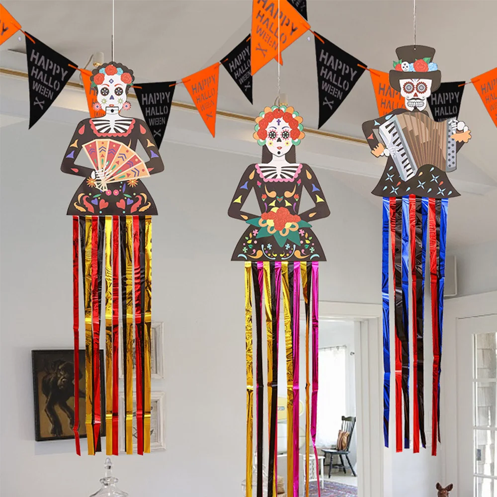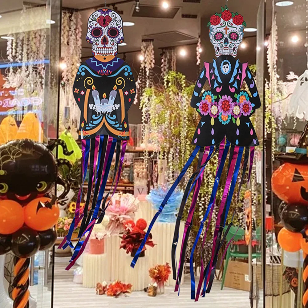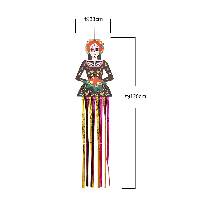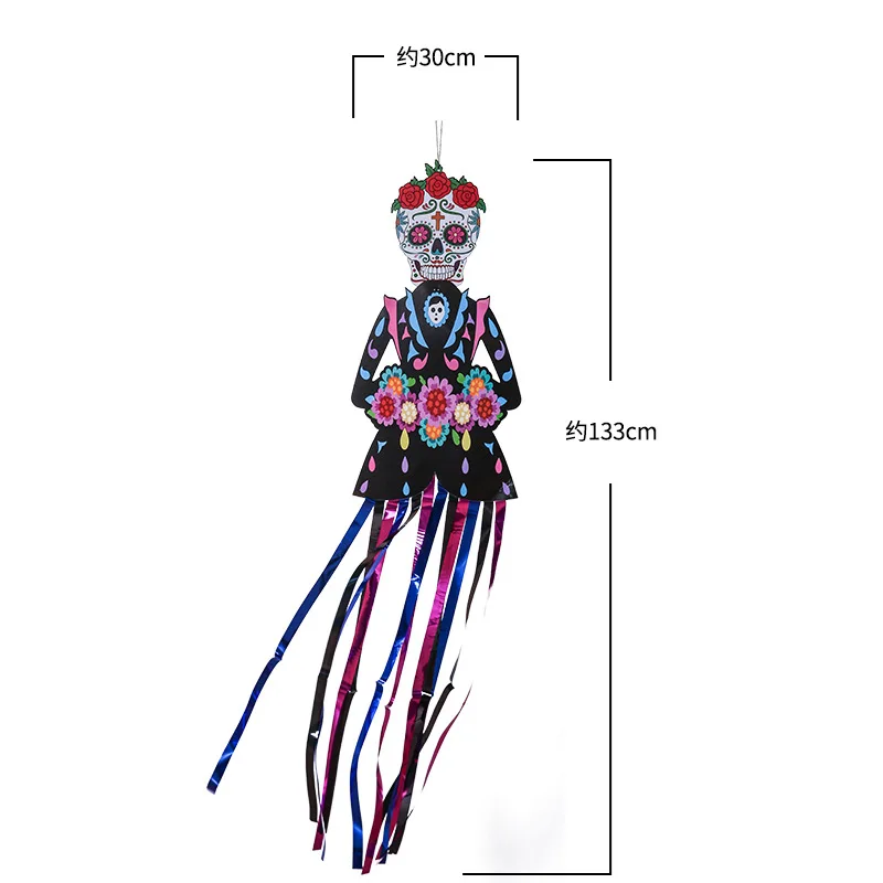 1.3m Mexico Day of the Dead Skeleton Ghost Bride Hanger Porch Sign Halloween Party Outdoor Decor Ghost Couple Door Hanging Flag 50