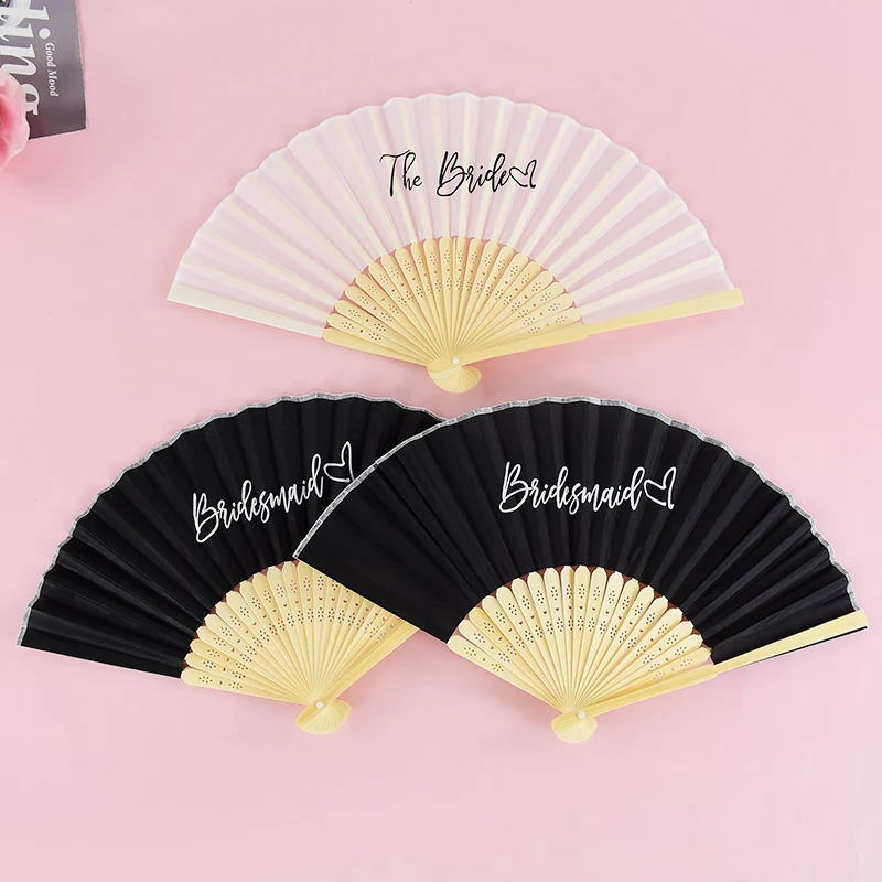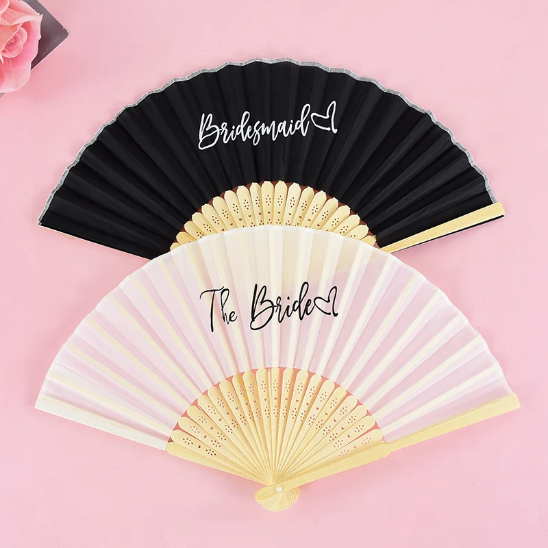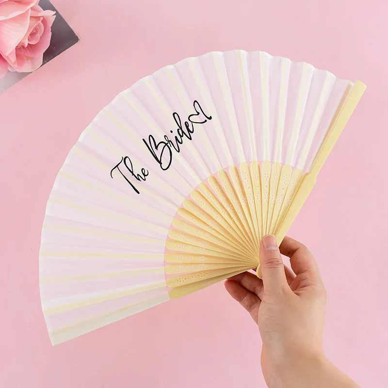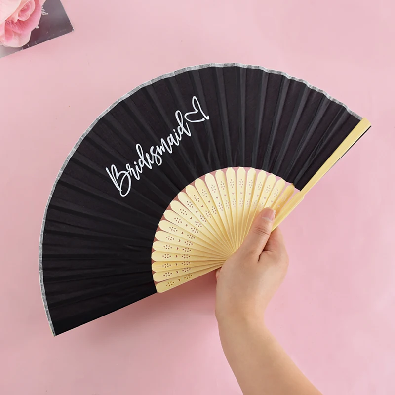 1-6pcs White Wedding Bride Hand Fans Bachelorette Hen Party Bridesmaids Gift Foldable Paper Fan Wedding Bride Shower Party Decor