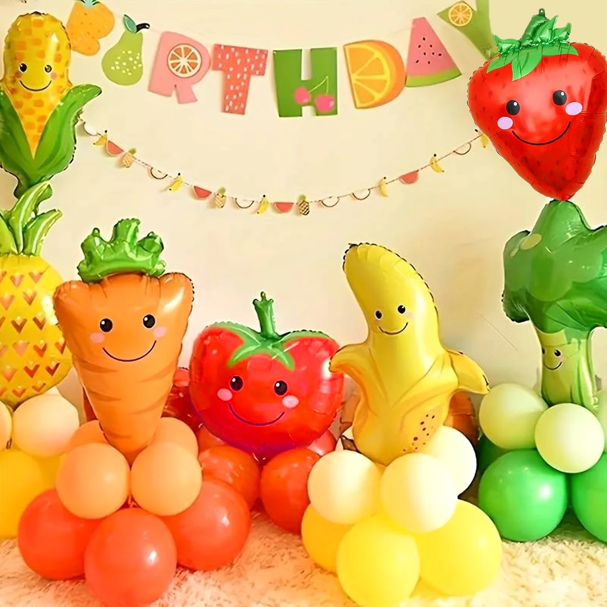 1/7pcs Strawberry Broccoli Corn Banana Tomato Orange Carrot Balloons Suitable for Birthday, Baptism, Summer Party, Fruit Theme