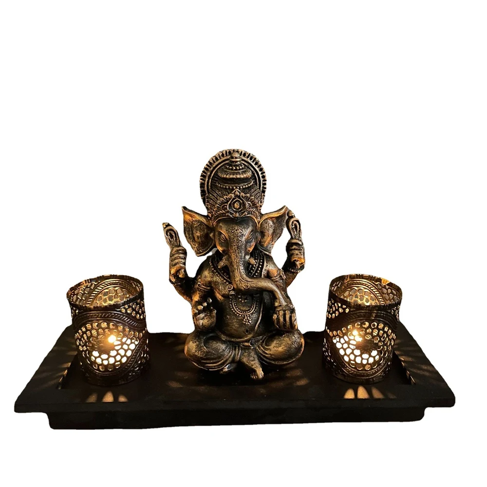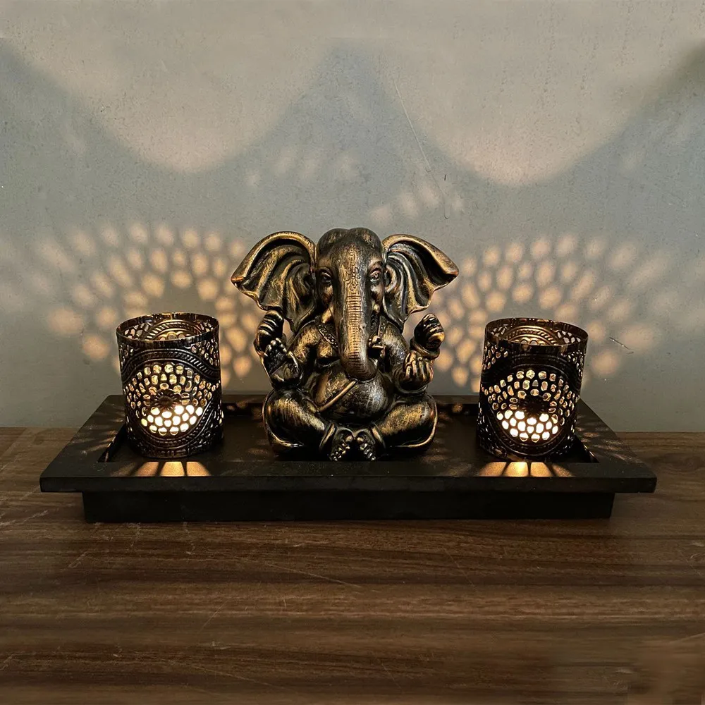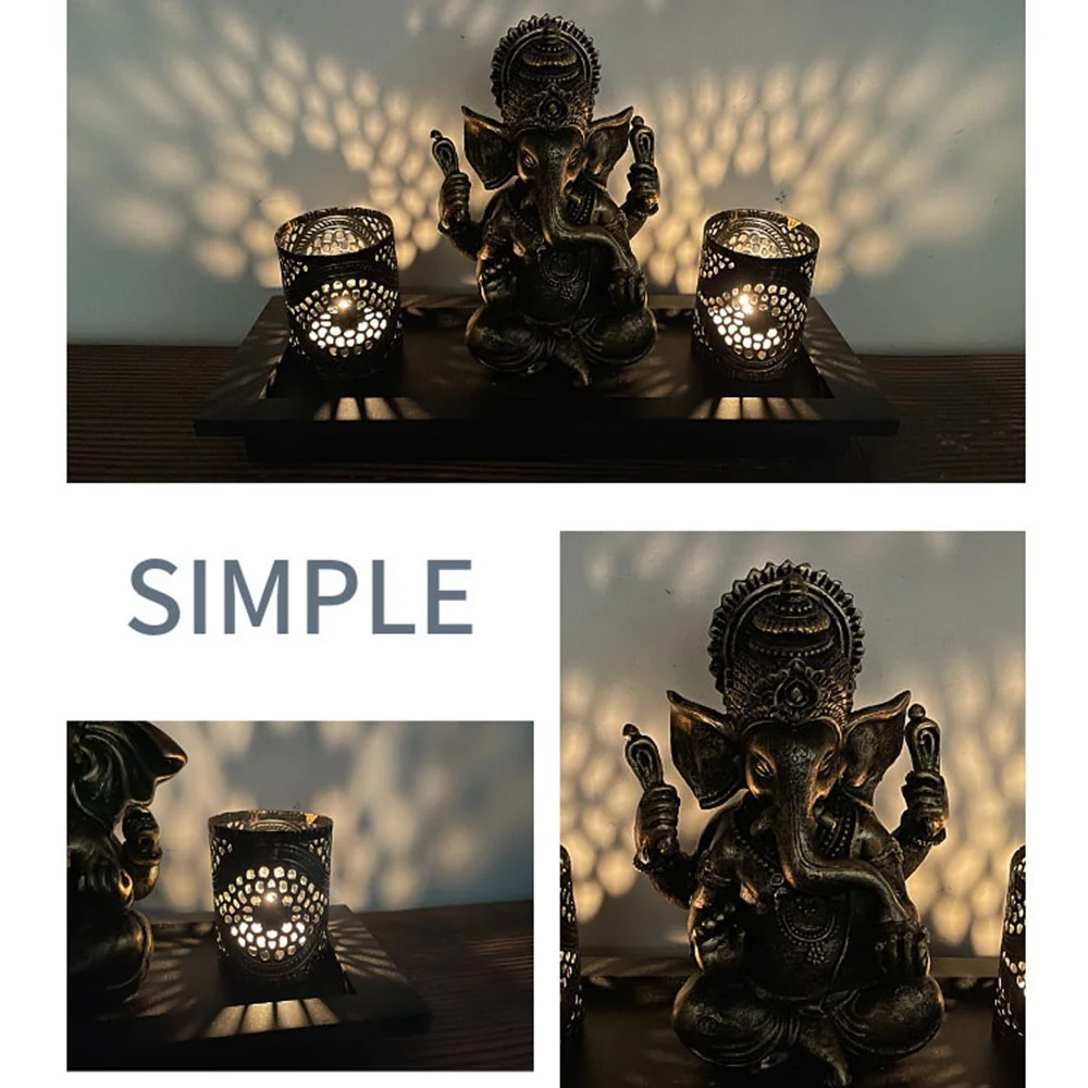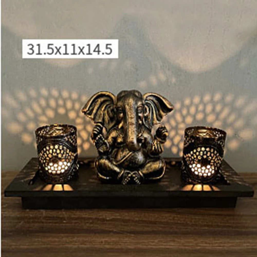 1 South Asian Indian resin retro gold elephant head divine wealth candle holder set for Diwali Candlestick ornament decoration