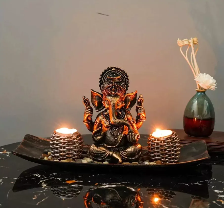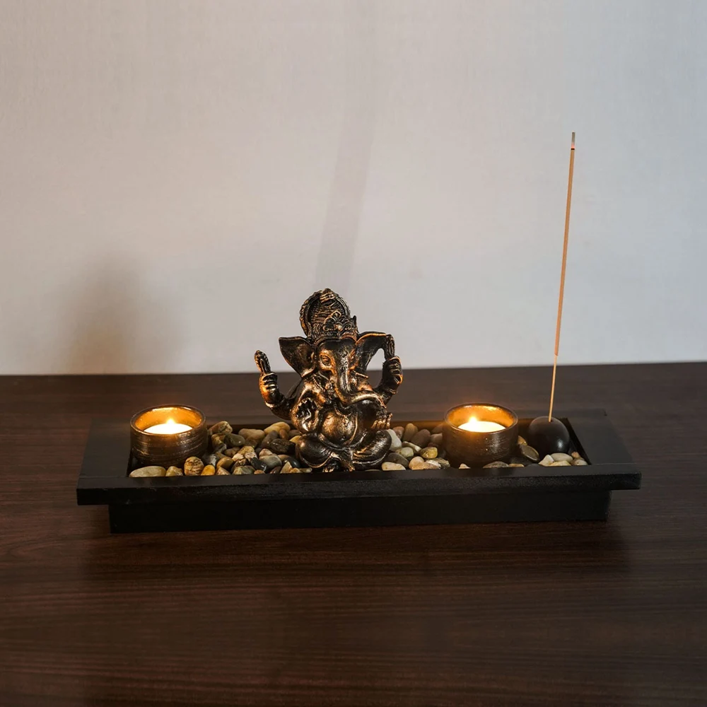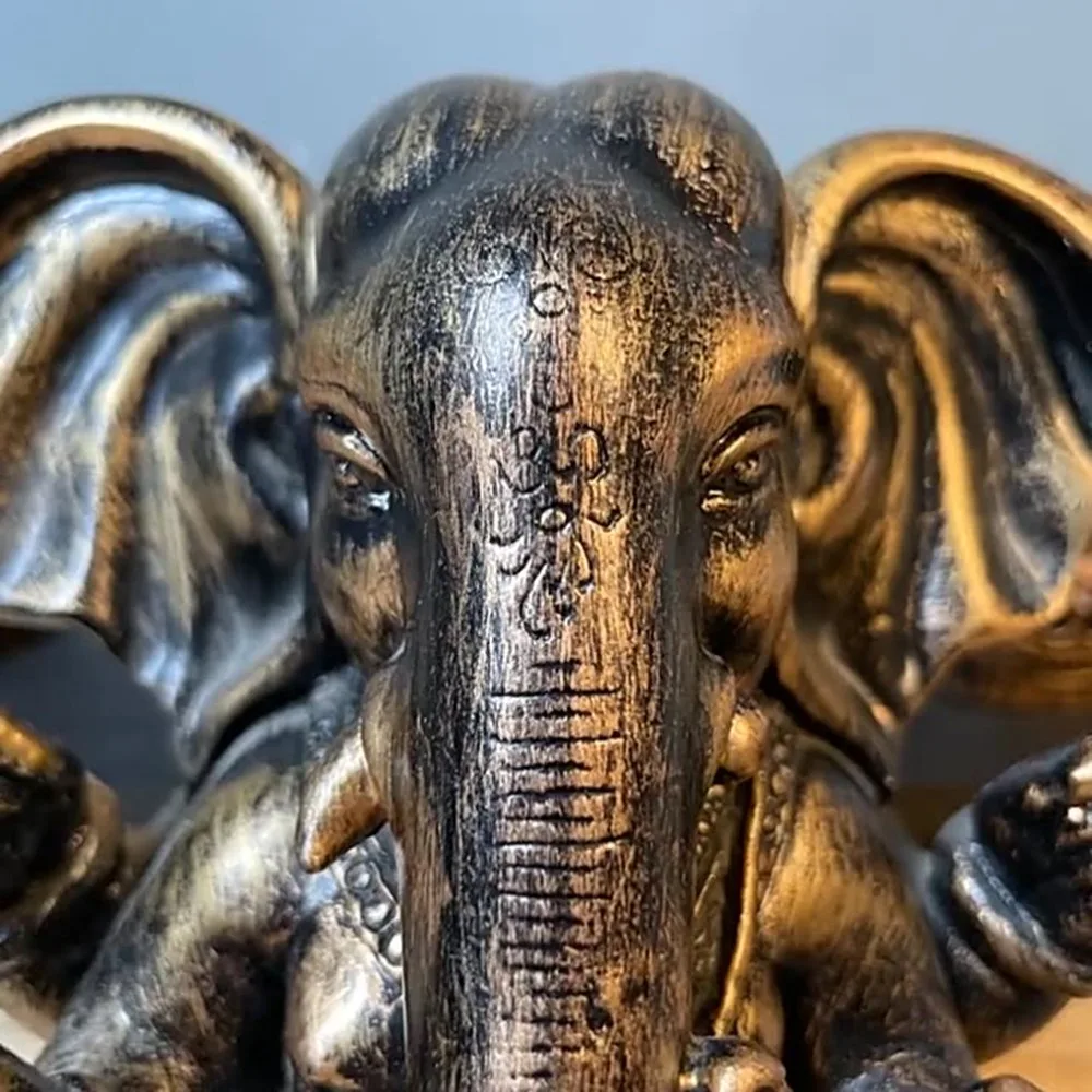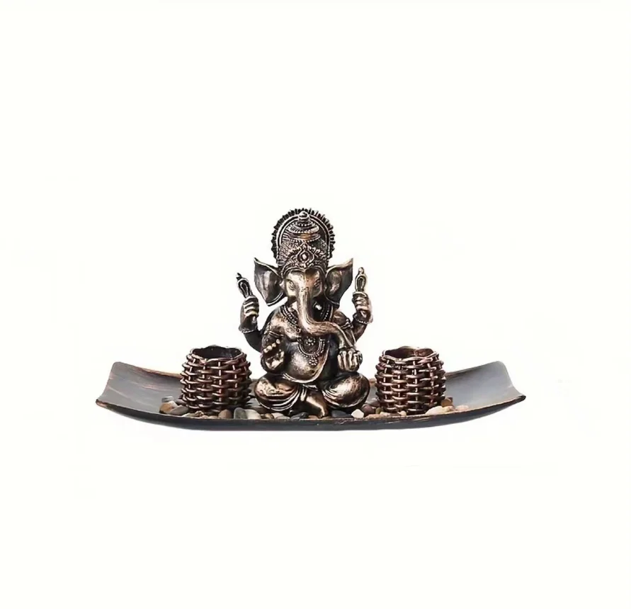 1 South Asian Indian resin retro gold elephant head divine wealth candle holder set for Diwali Candlestick ornament decoration