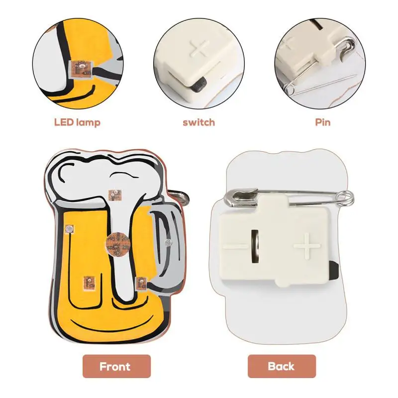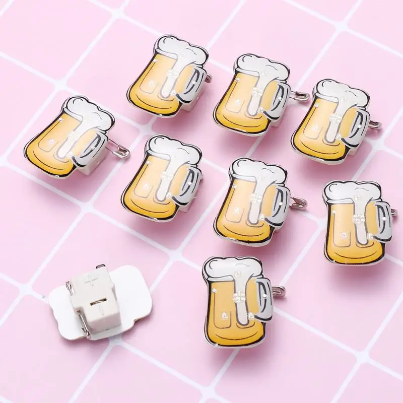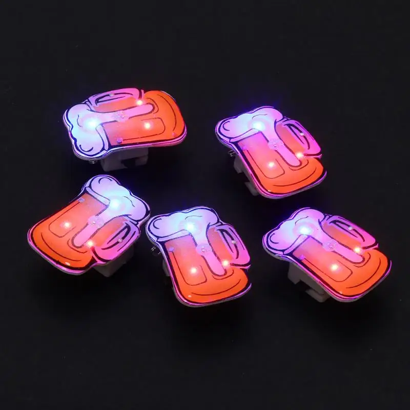 10/25Pcs LED Brooches Pin Beer Mug Brooch Jewelry Lapel Pin Oktoberfest For DIY Clothing Bags Jackets Hat Badge (Random Color)