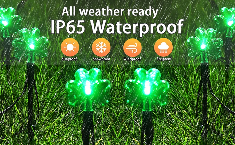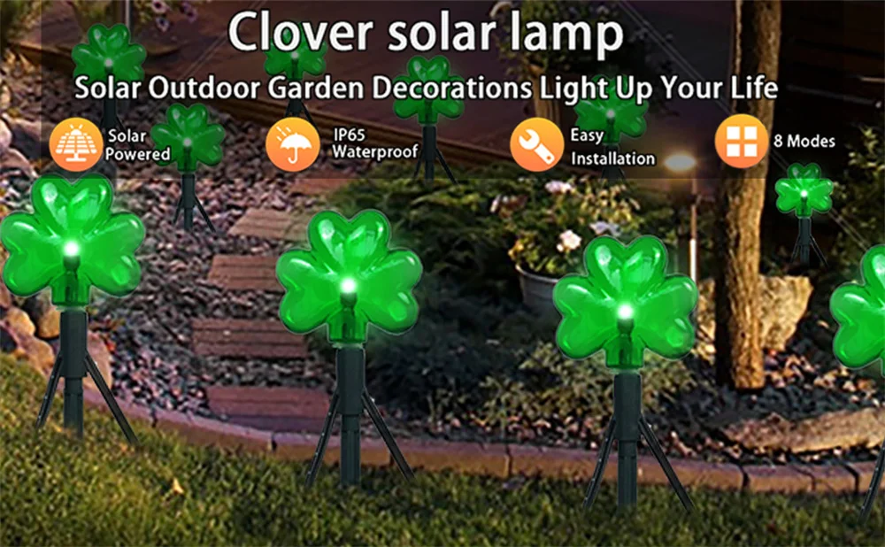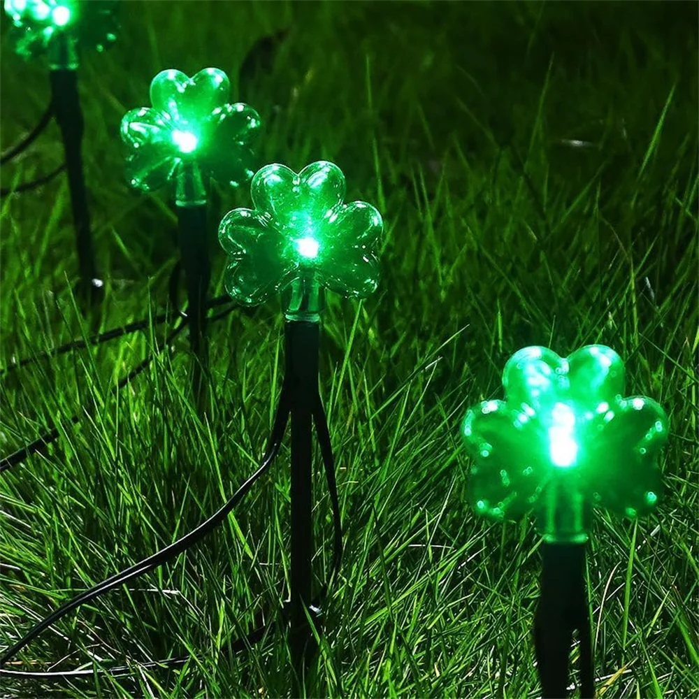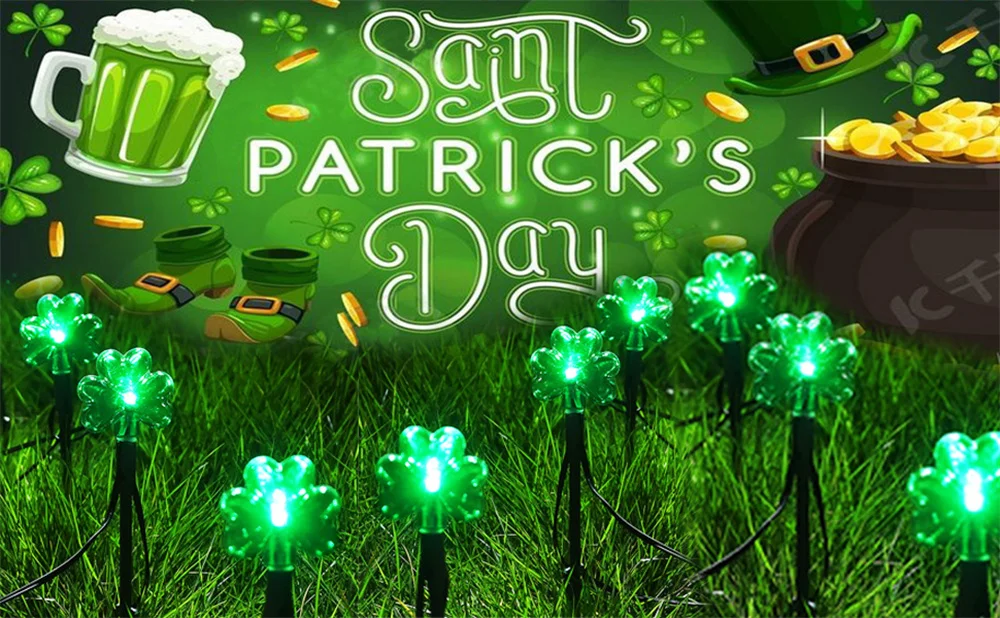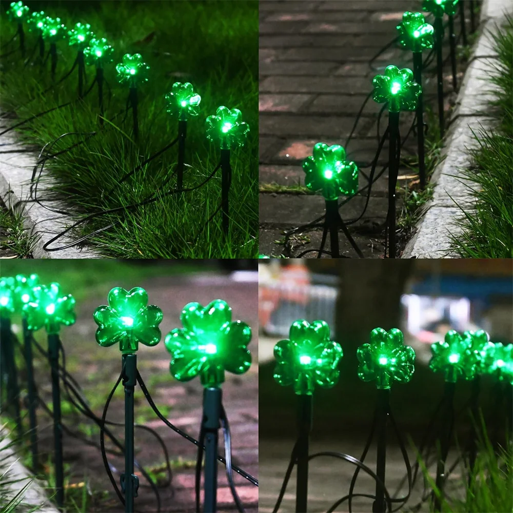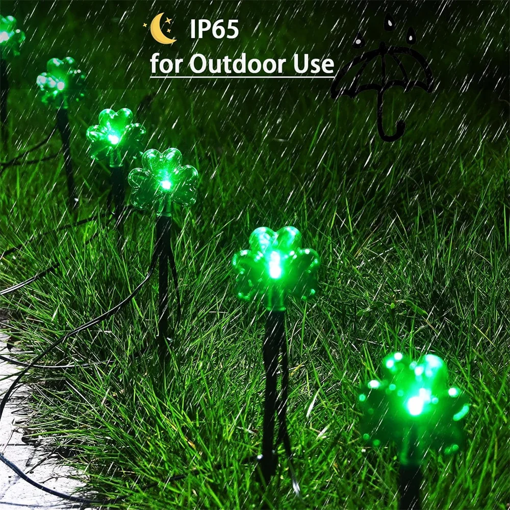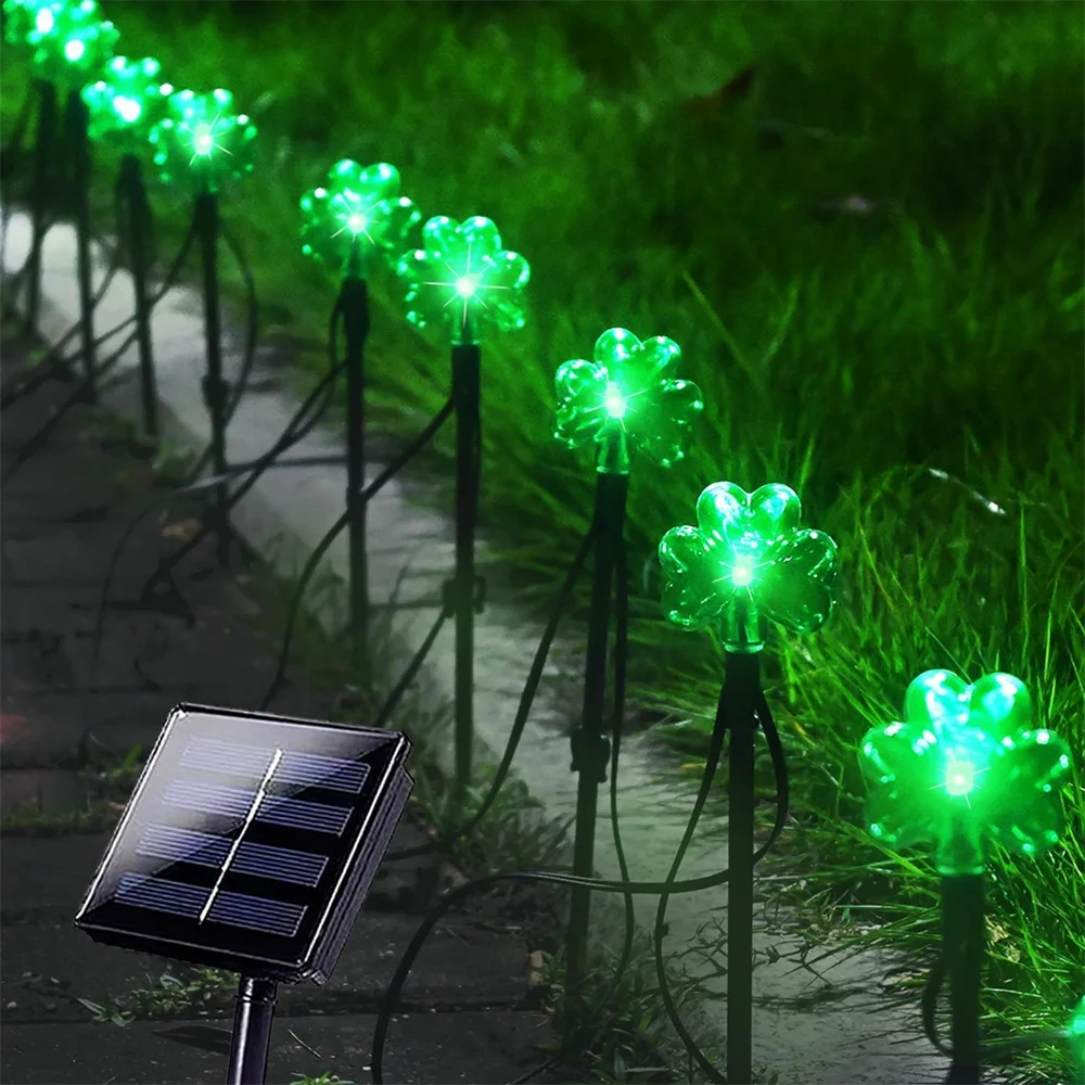 100 LED St Patricks Day Decorations Lights Solar Shamrock String Lights, Outdoor Solar Powered Garden Pathway Lights 635