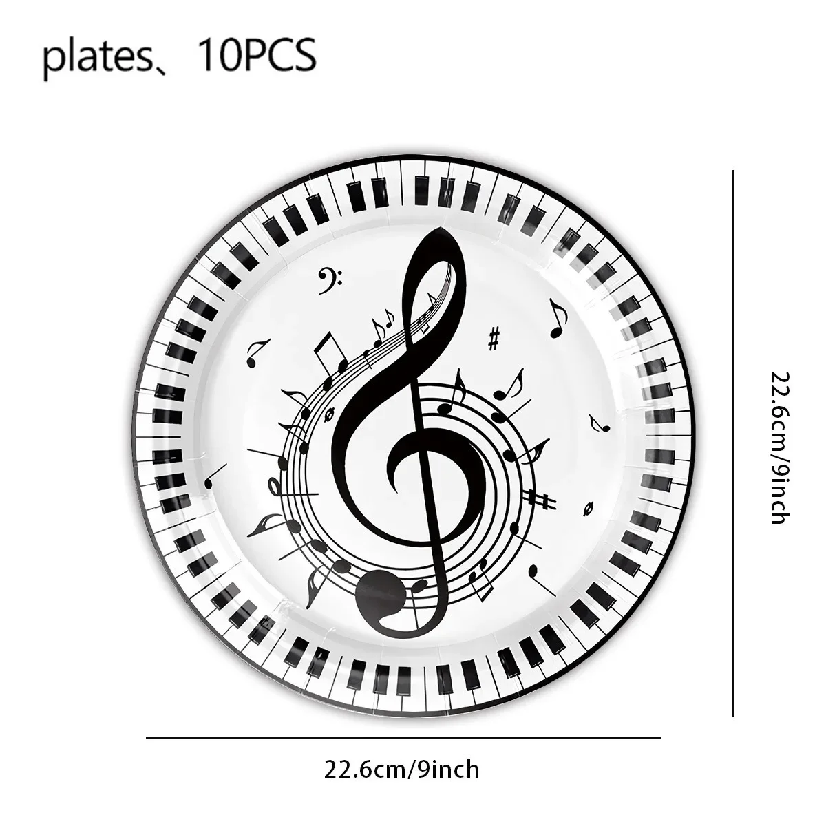 10Guests Music Festival Party Disposable Tableware White Black Note Happy Musical Lover Birthday Party Supplies