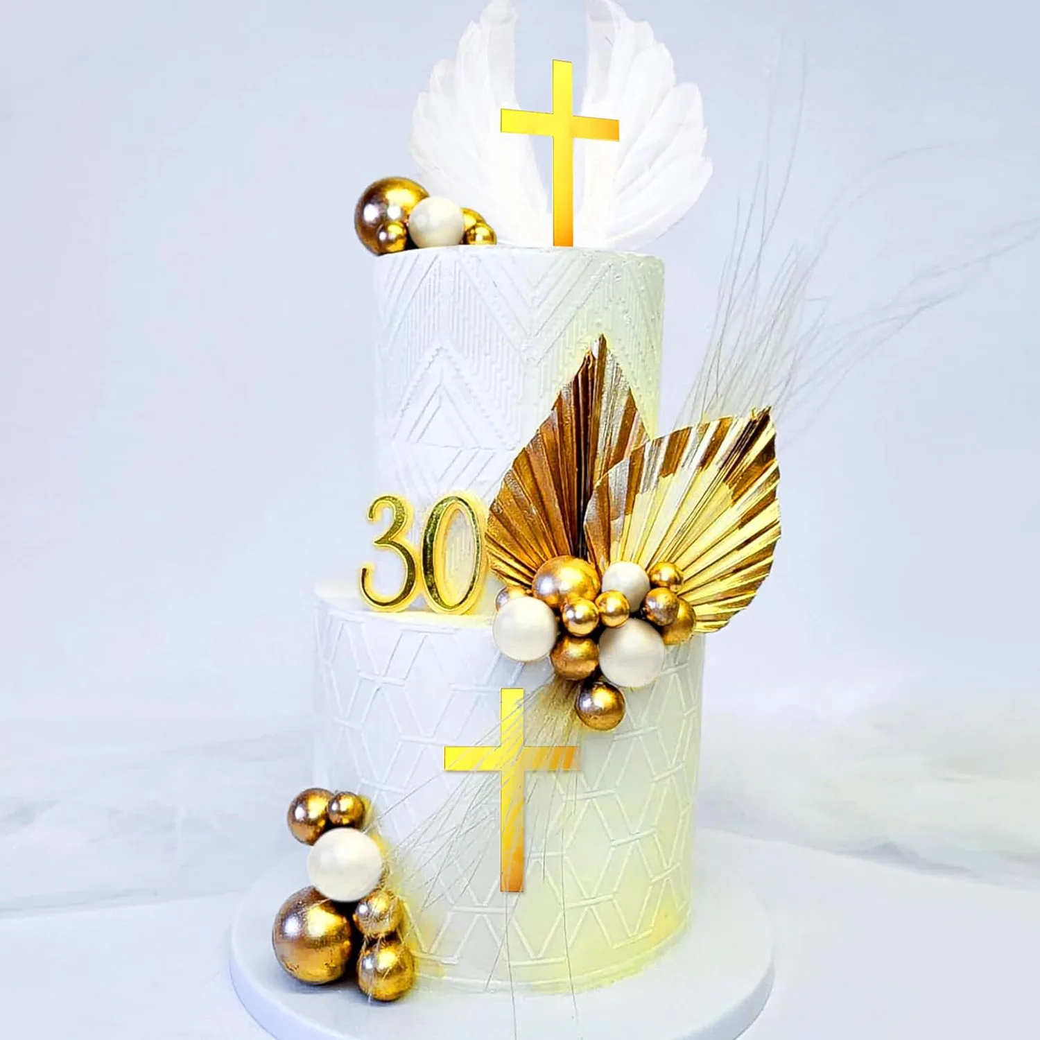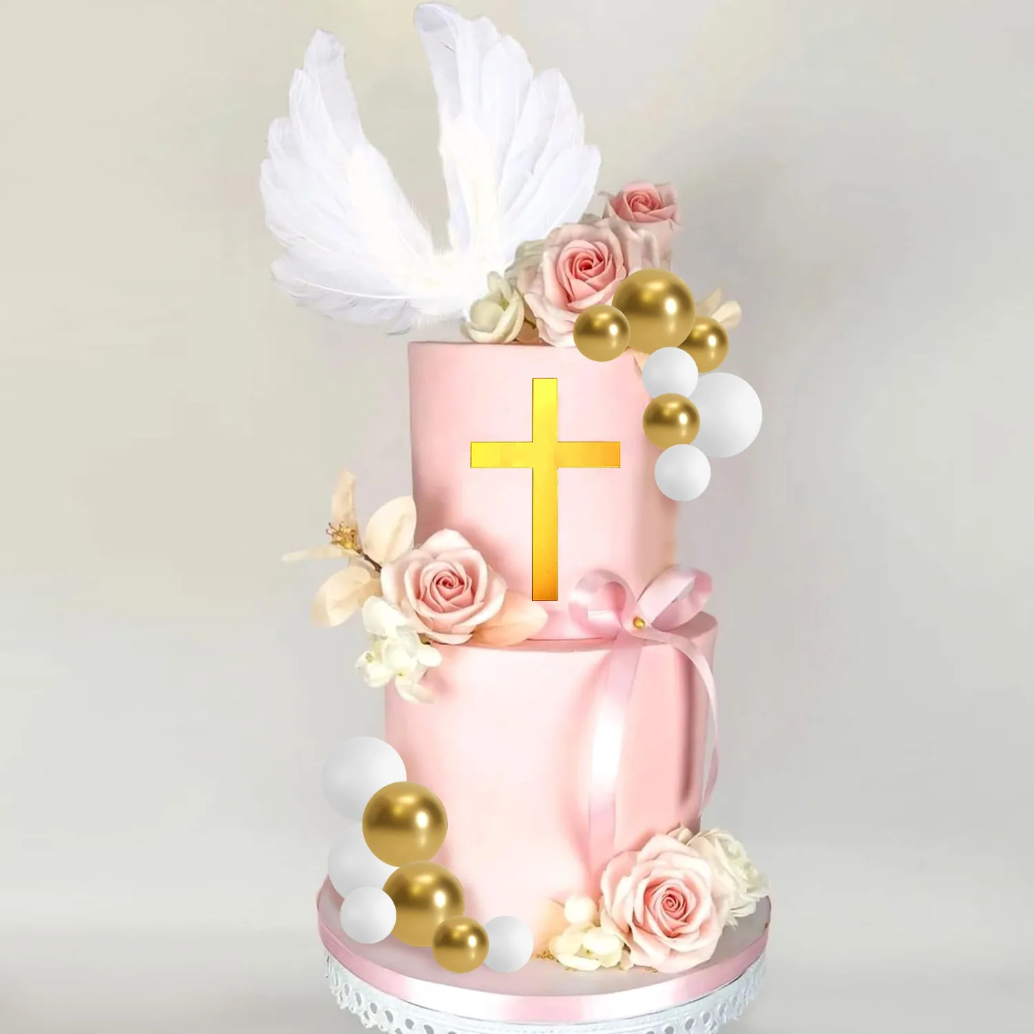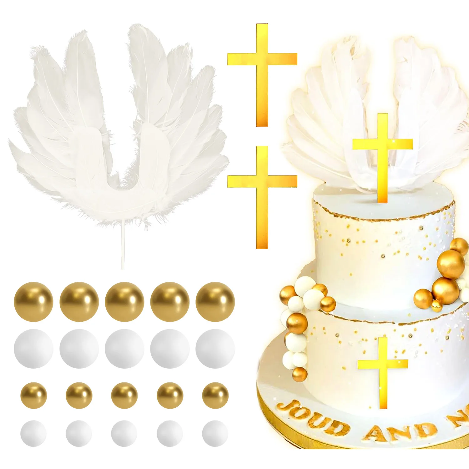 White Feathers Cake Decoration Baptism Cake and Angel Cake Decoration Cross Decoration Baptism Party Favors Baptism Party