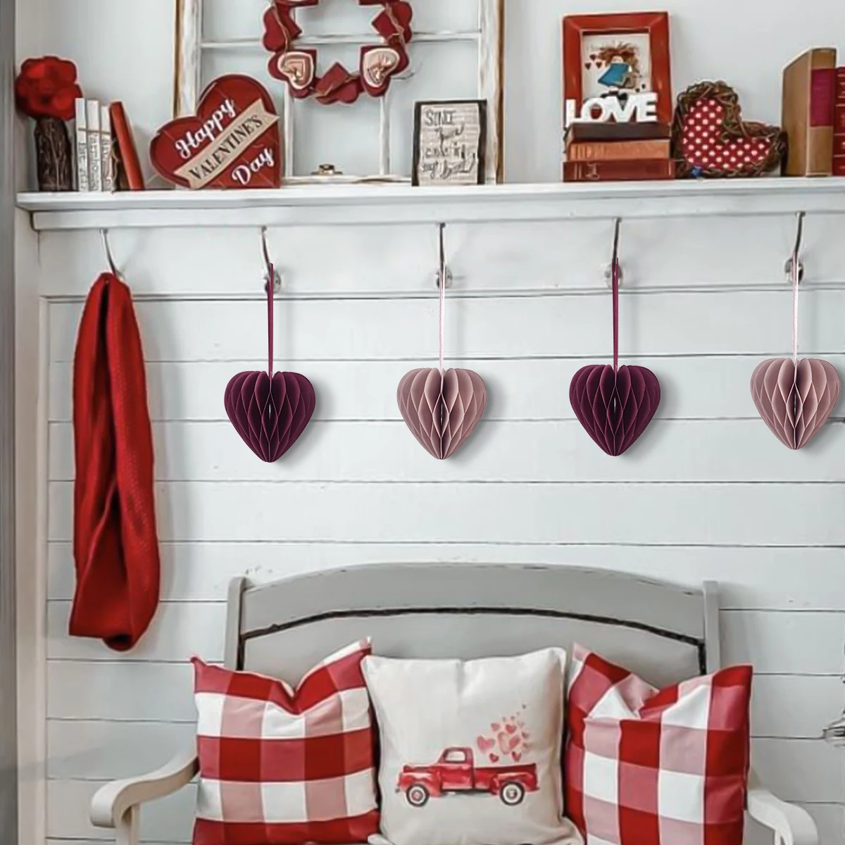 1/2Pcs Mini 3D Love Heart Paper Honeycomb Ball Garland Ornament for Valentine's Day Wedding Anniversary Party Decoration